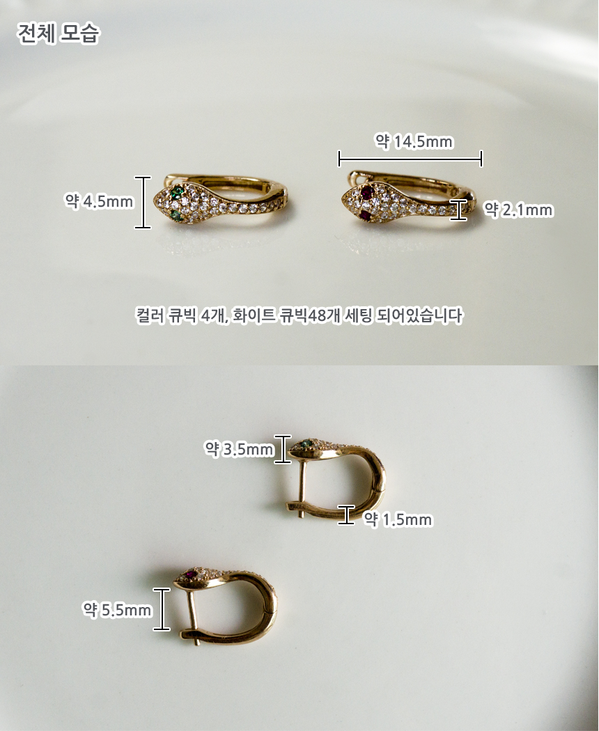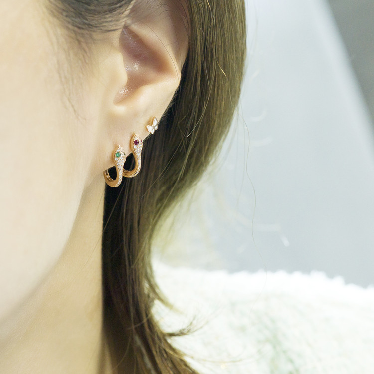 14k 18k 행운의 스네이크 뱀 원터치 귀걸이