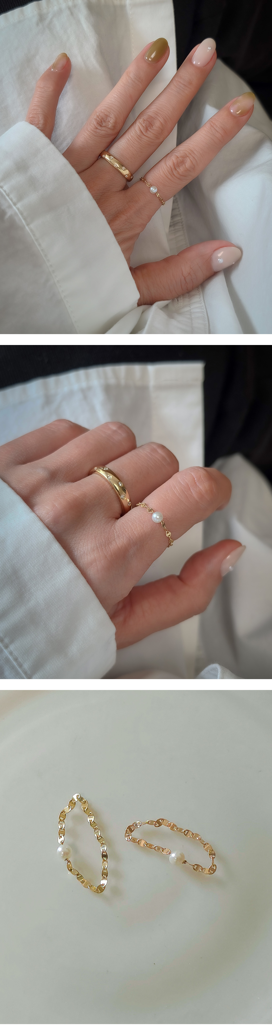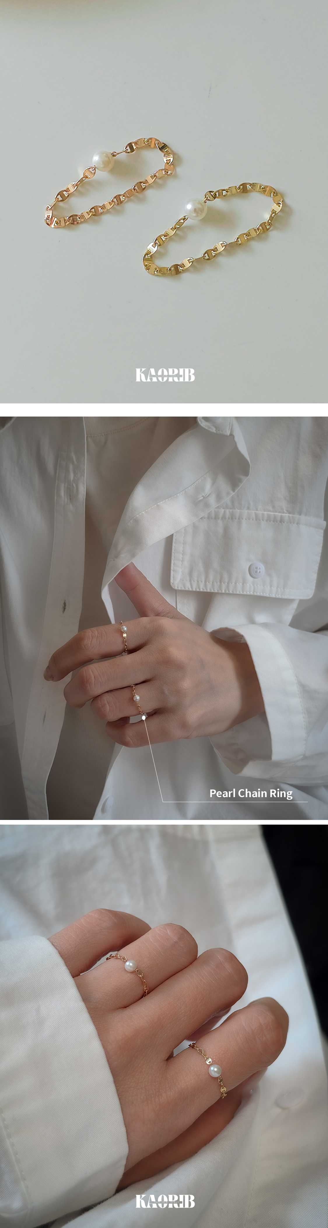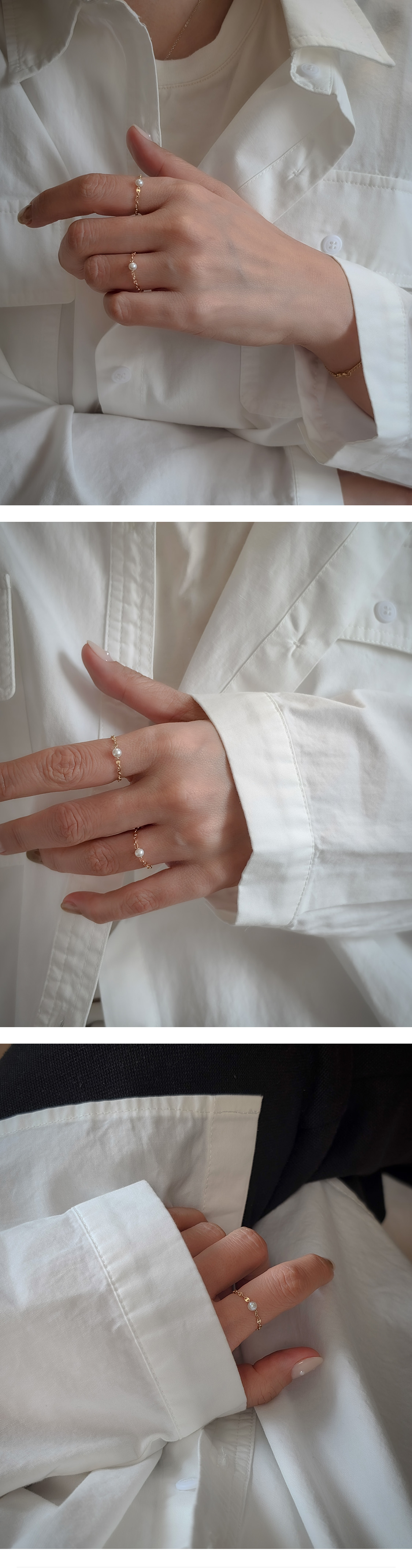 진주에 반짝이는 입체적인 체인과 함께 연출된 반지로